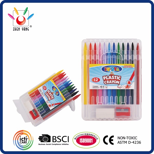 Plastic crayons are an innovative alternative to the classic wax crayons.Non-toxic plastic material leaves your hands clean like wax crayons and much more break-resistant,leaves no waxy residue on hands so there is no need for a messy paper wrapper.