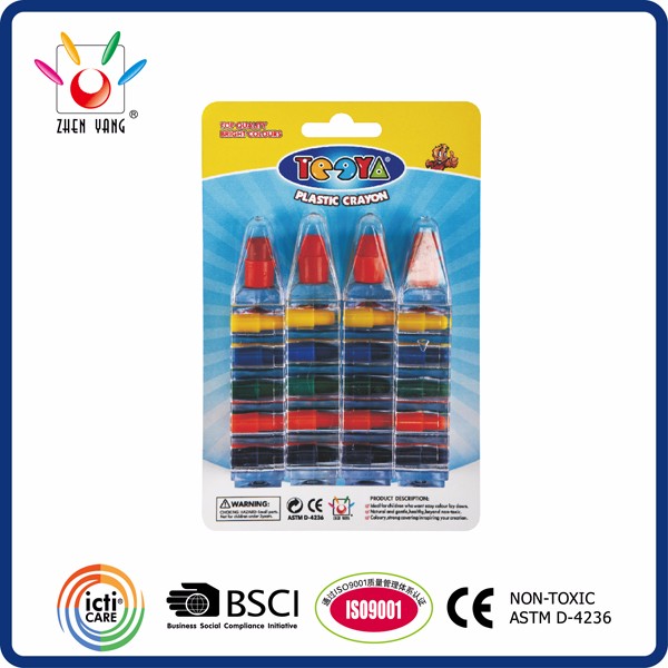 Plastic crayons are an innovative alternative to the classic wax crayons.Non-toxic plastic material leaves your hands clean like wax crayons and much more break-resistant,leaves no waxy residue on hands so there is no need for a messy paper wrapper.