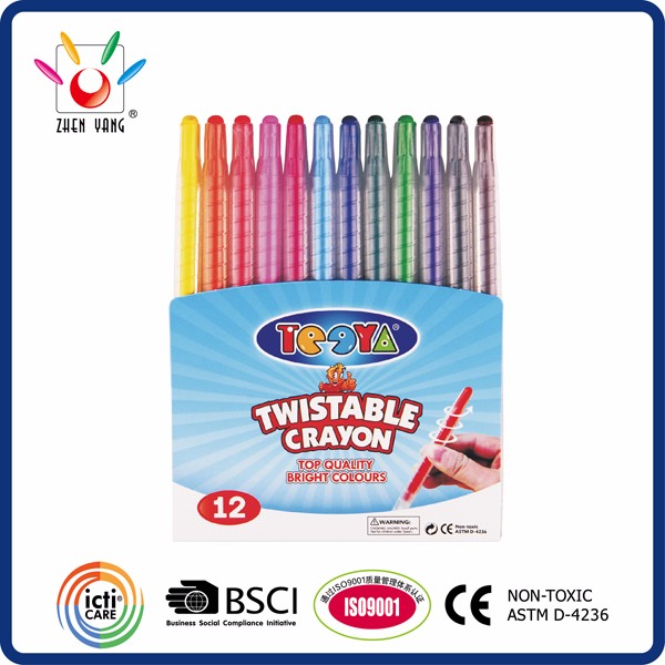Non-toxic twistable crayons, feature is break-resistant plastic casing,never need sharpening or label peeling,just twist and all colors come in a reusable plastic barrel.Not for children under 3 years.